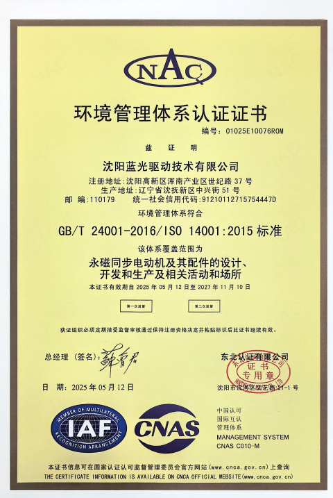 环境管理体系认证证书
