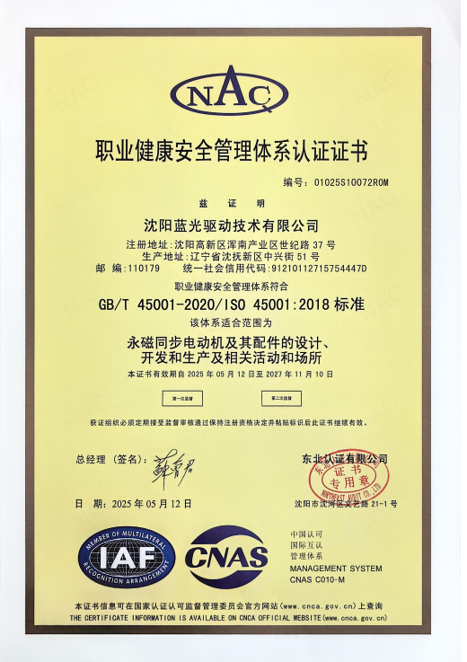 职业建康安全管理体系认证证书